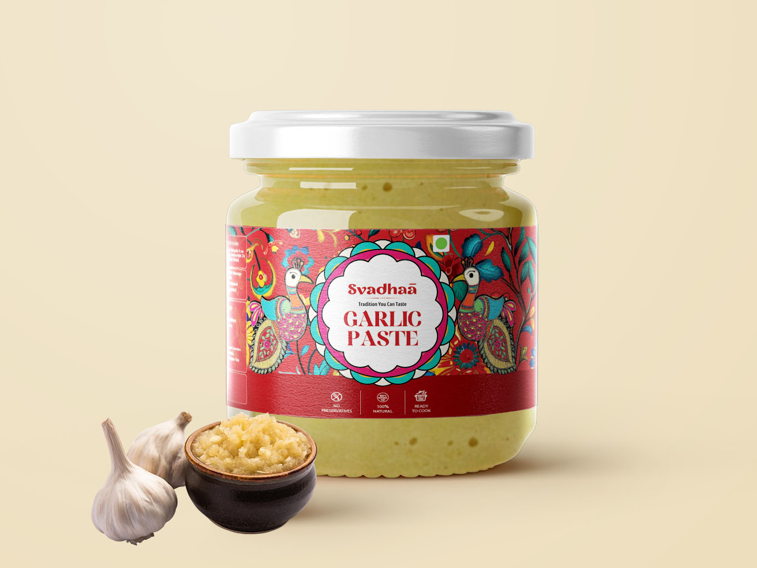 Svaddhaa Garlic Paste is a tribute to the essence of Indian kitchens. It delivers the perfect balance of pungent, sharp garlic . This fundamental paste is the starting point for countless authentic dishes, saving you precious time while elevating the flavor and aroma of your everyday cooking.
